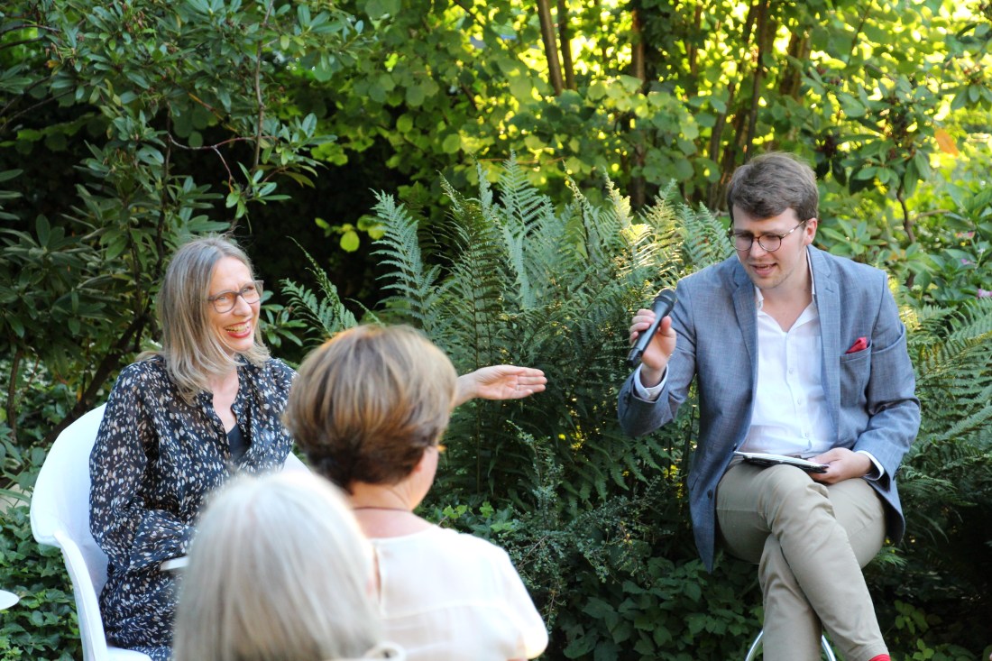 Ein warmer Juliabend in Freiburg. Daniela Engist liest aus ihrem zweiten Roman Lichte Horizonte. Die Buchhandlung zum Wetzstein hat zur Veranstaltung eingeladen, Susanne Bader, Geschäftsführerin der Buchhandlung, und Pascal Mathéus stellen der Schriftstellerin zwischen den Leseblöcken ein paar schwierige Fragen.